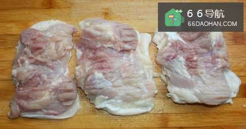 将鸡腿排洗净,然后剔除骨头,将肉拍松。