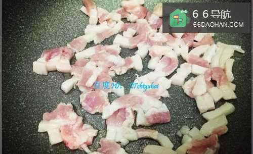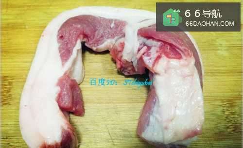 3准备一块三层肉,将其去皮,然后清洗一下,切成丝条状。