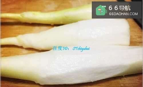 2将茭白头部和关节处较老的部分削去,重新清洗一下,然后将茭白切成丝条状。