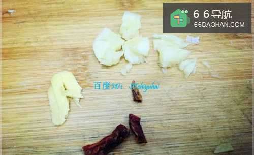 5准备少许辅料生姜、蒜头、辣椒干,将其放入锅中爆香一会。