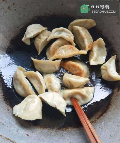 6如图,把煎制金黄的饺子盛入盘内即可食用,非常香脆哦。