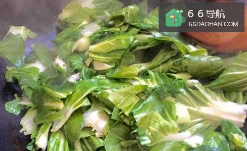 6翻炒过程中如果有点干的话可以用碗接一点点水,继续翻炒,待菜叶子变色即可。