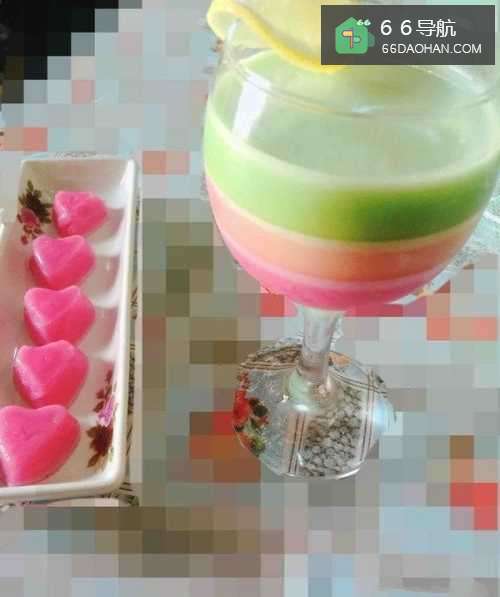 5然后就等它彻底变凉后加入杯中或者模具中放入冰箱冷藏凝固(我是一层等了半小时),图中高脚杯中三种颜色是只要你凝固好一层再做第二层然后加上去就行了,步骤一样
