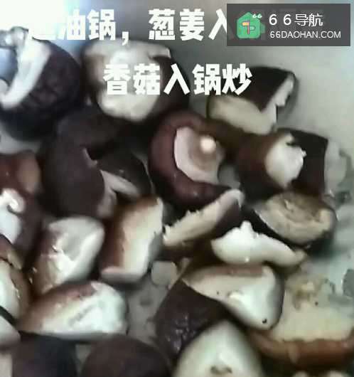 3从平底锅中将葱和姜搅拌至平底锅中,然后将香菇搅拌至平底锅中