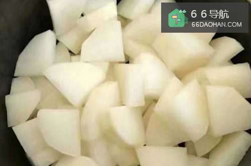 10把切好的白萝卜放到砂锅底部。