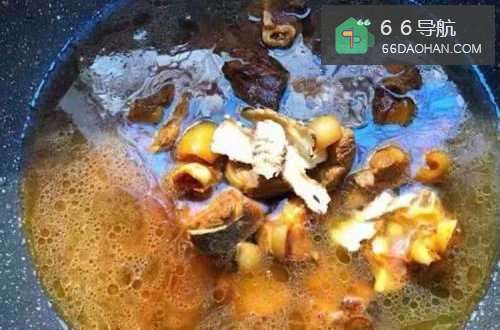 8加入4g当归,倒入高过羊肉1cm的水,大火把水烧开,转中火慢炖,把汤全部炖干,羊肉软烂。