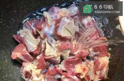 5热锅放入适量油烧热,倒入羊肉和姜片翻炒一下