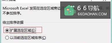 4弹出“排序提醒”窗口,“排序依据”选“扩展选定区域”。