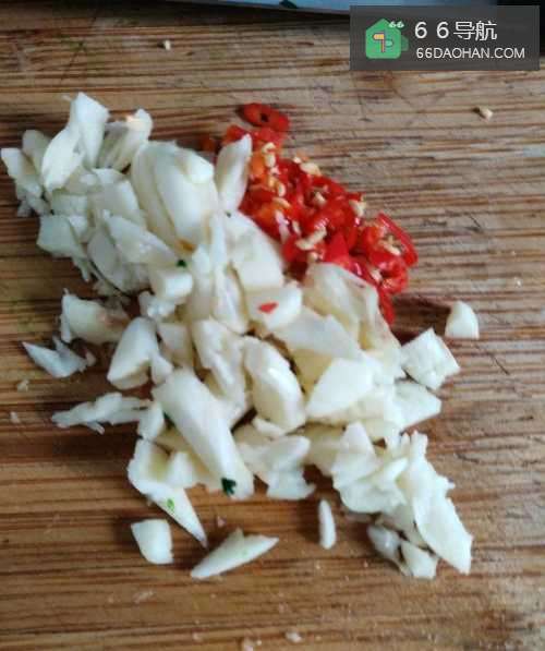 4第四步,准备好蒜和辣椒,把它们切碎。
