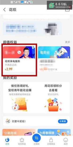 3屏幕向下拉,在【超值权益】中,选择【花呗来电服务】。