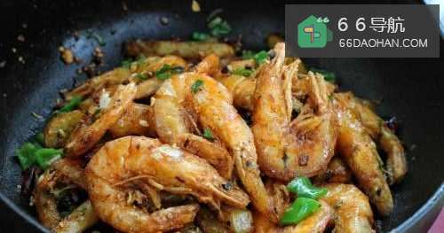 5锅中倒入食用油烧至七、八成热,放入大虾中火炸制变色捞出。