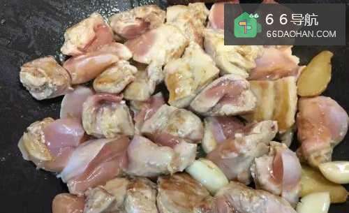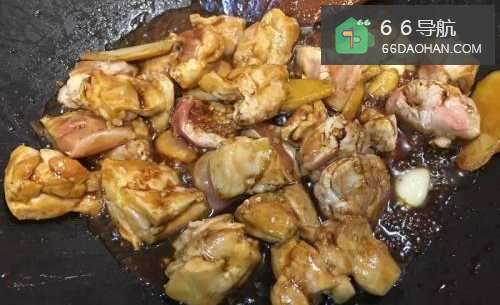 3将所有调味料下锅翻炒,加盖以小火煨煮至鸡腿肉变软,约15分钟。