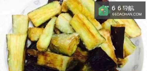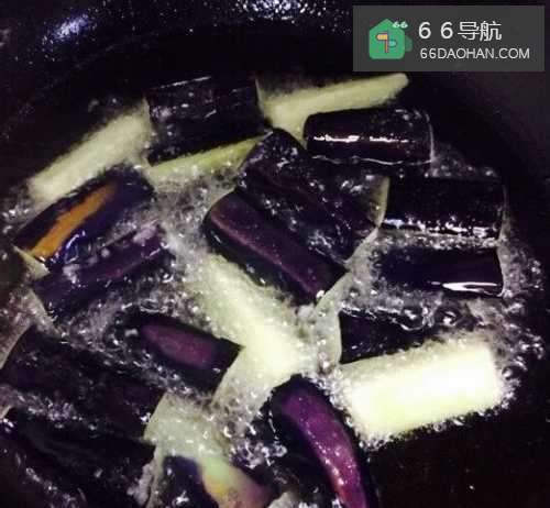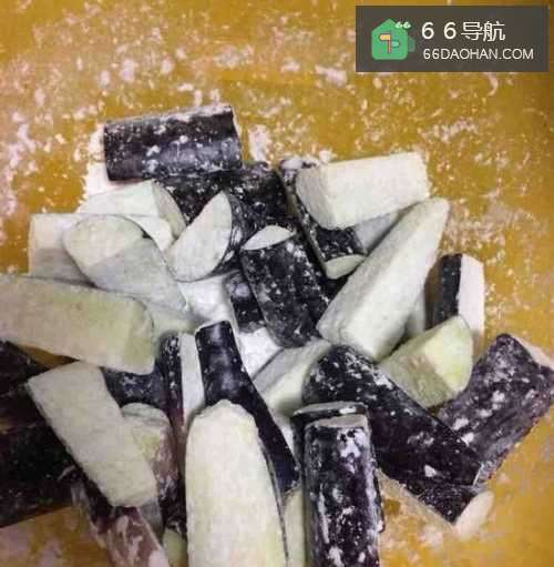3锅烧干倒入植物油,大火将油烧热,放入切条炸至表面金黄。
