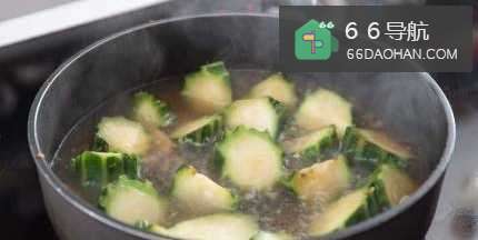 44、加入丝瓜及料酒炒香,加入适量滚水煮滚