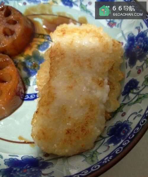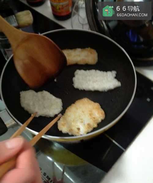8平底锅刷油 待油热后 把糯米饼放入锅内煎 因为糯米是之前就蒸熟的 所以这一步 只要煎到自己满意的程度(比如不粘了 煎面金黄之类的)就可以出锅了 (所以控制煎锅的人已经不是我了 我满手是油跟糯米渣渣的站在一边围观着 身后还有其它待煎的糯米饼 由此可见 两个人比较靠谱)