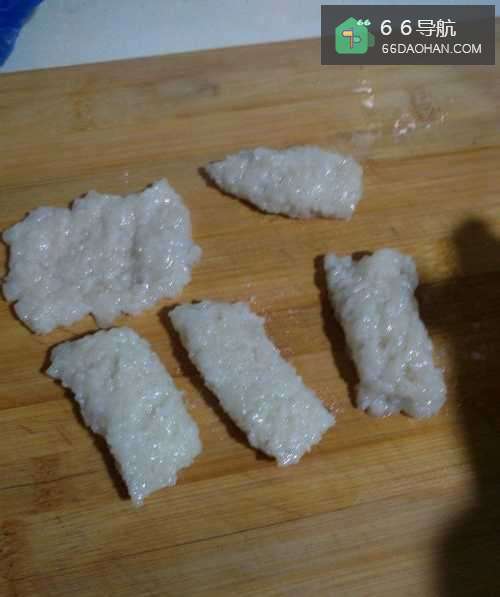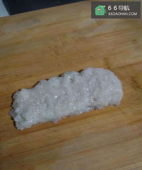 6糯米捣的差不多都碎了之后 就可以拿出来放在面板上(捣过的糯米比较黏 可以在手上 面板上 刀上涂一些食用油 防止它在各种地方粘成你控制不了的状态)做成长条