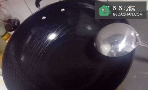 2把空锅烧热,倒入搅拌好的淀粉汁。