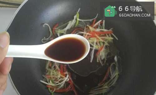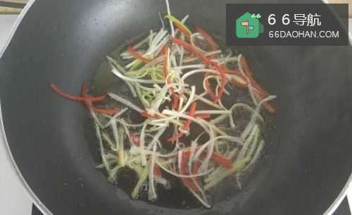 7另起锅,烧开食用油,放入葱、姜、辣椒丝爆香