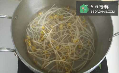 3烧一锅开水,放入少许食盐,快速焯熟黄豆芽
