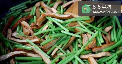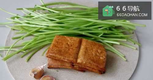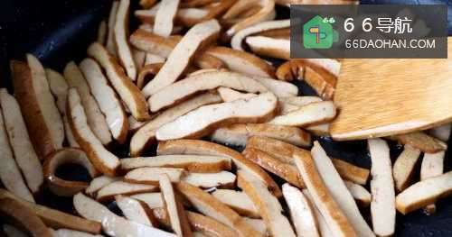 5锅内放适量的色拉油,放入豆干翻炒,加入适量盐、生抽翻炒均匀;