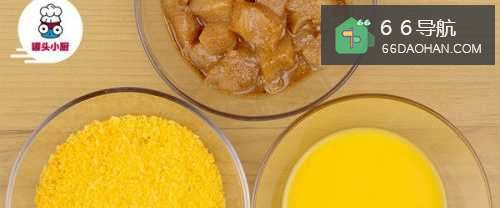 3鸡蛋2个打散,腌好的鸡肉一块块先沾上蛋液,再裹上面包糠,全部做好均匀铺在盘子上
