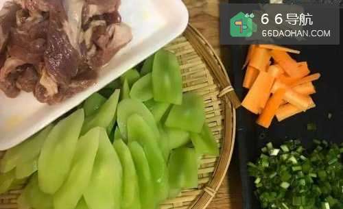 2葱洗净切葱花;蒜头拍扁去皮切片;红萝卜切片;莴笋切片;五花肉切片,用腌料抓匀备用