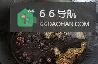 4锅里放入植物油,把冰糖放进去小火炒化。