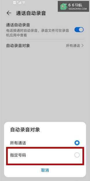 6.若想设置指定号码录音,则点击【自动录音对象】。