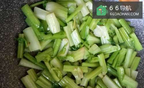 择芹菜、切段、开水炒一下,口感更好。