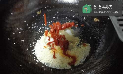 7锅内留少量油放芝麻、白糖、蕃茄酱米醋。
