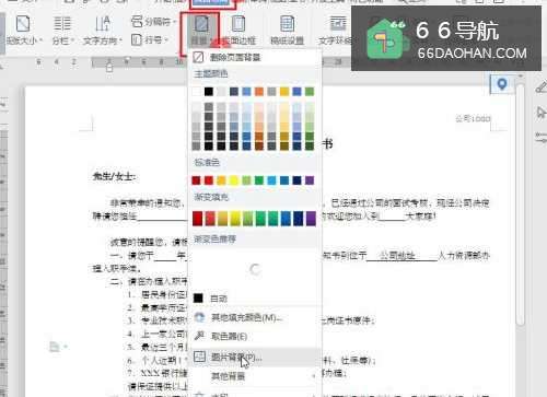 2点击菜单栏【页面布局】—【背景】—【图片背景】;