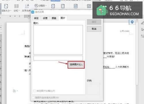 3在“填充效果”对话框,点击【选择图片】;