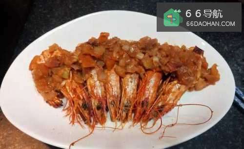 用虾酱配合番茄制作干煎虾,别有一种风味