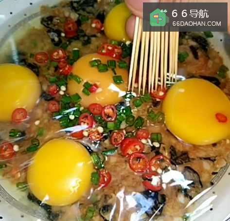 4上面再打上鸡蛋,撒上适量的葱花;