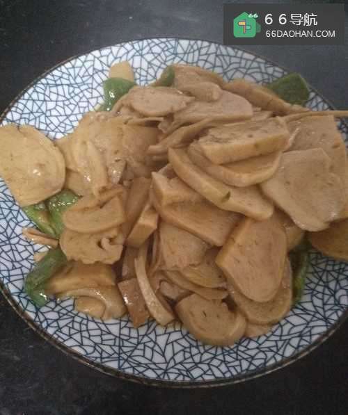 3倒入洗净的面筋片,与青椒汇合煸炒