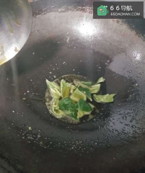 2开火,倒油,将切好的青椒片倒入锅中煸炒,炒至变色即可