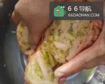 4静止20分钟左右后,将萝卜丝全部捞起来,装在一个细丝网或者一块干净的布中,用双手挤压出里面的水分。