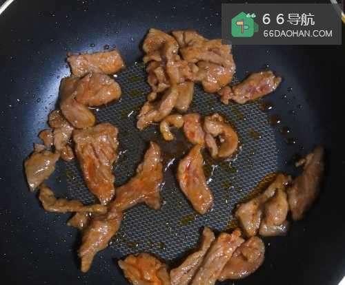 3锅中放少许油,油热后放入肉片翻炒煸白,捞出备用。