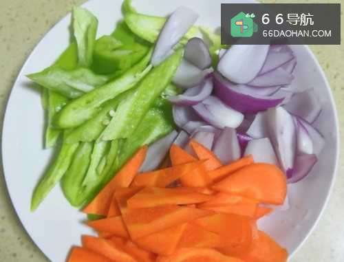 青椒、胡萝卜、洋葱分别洗净切碎备用。