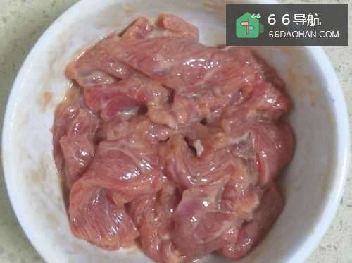 2牛里脊切成片,放入生抽和少许盐加入淀粉抓匀。