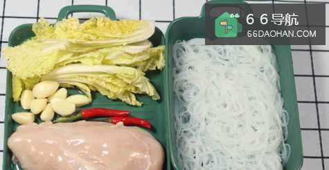 2接下来,将粉丝泡软,然后将娃娃菜也撕小条,用一个大一点碗装好。