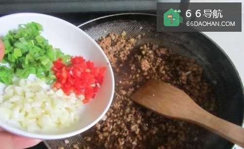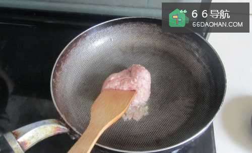 6将锅烧热, 放少量的油, 下入肉末, 翻炒肉末