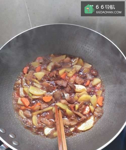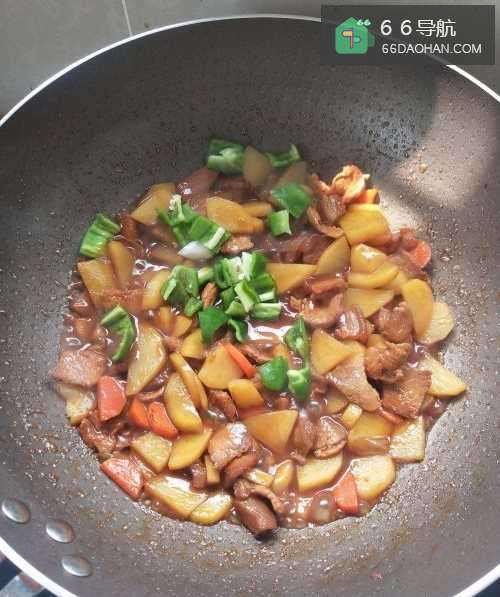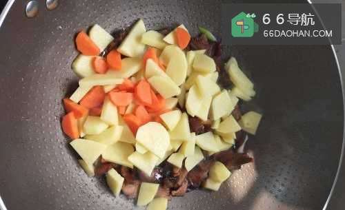 5如图,放入土豆和胡萝卜,翻炒两下。