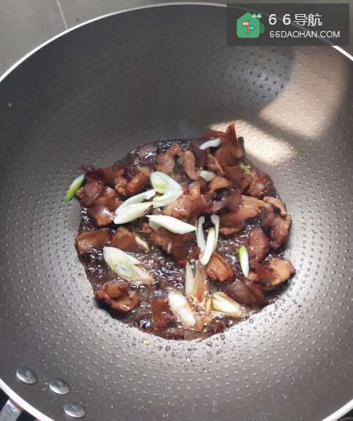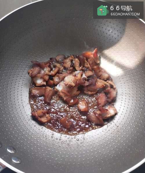 3如图,锅内加入适量油,然后放入适量肉片,我用的肉片是之前做熟的红烧肉。