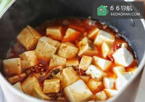 6下焯水沥干的豆腐煮开,加入香油、生抽、糖、胡椒、花椒面调味。