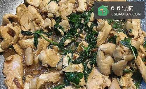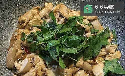 酱炒鸡胸肉,再加入九层塔,散发着特殊香味的一道家常菜。