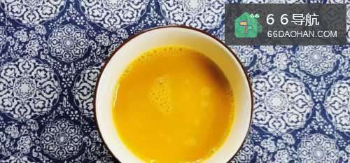 2起锅热油,转开小火,放入蛋液,慢慢煎成金黄色。