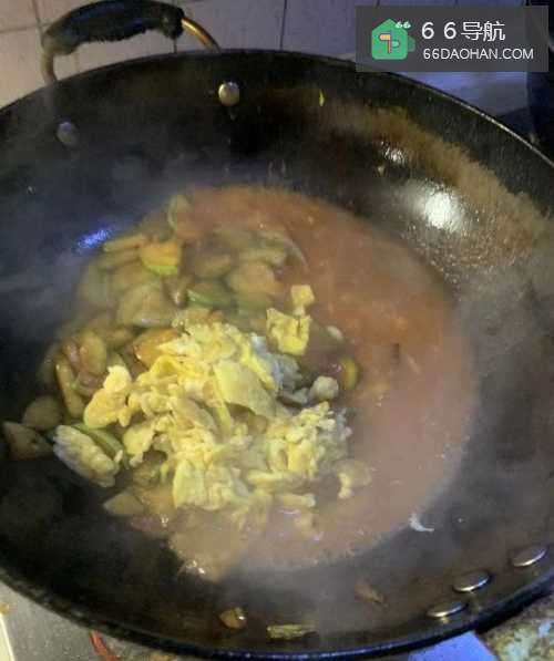 5西红柿熬成稠状,放入炒好的西葫芦和鸡蛋