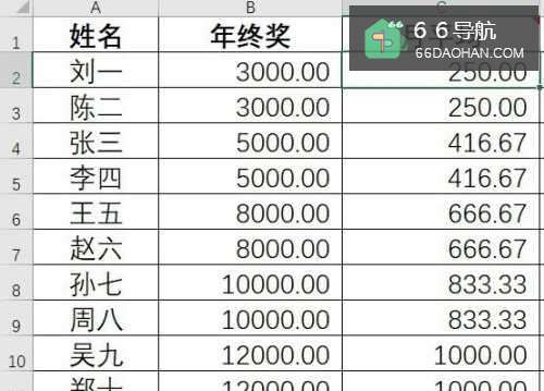 1.算公式=员工发放的年终奖/12