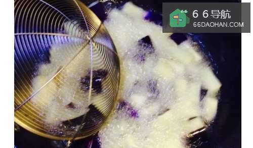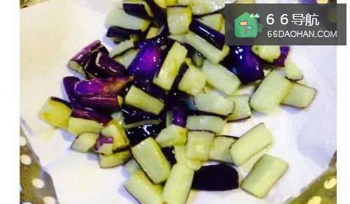 6炸至茄子稍许变小变色,起锅控油,可以用厨房用纸吸油